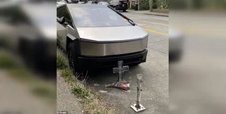 Tesla Cybertruck стоимостью 82 000 долларов, оставленный на обочине дороги в Сиэтле, штат Вашингтон, неожиданно стал туристической достопримечательностью. Его бросили из-за отказа подвески. А шутники уже устроили у футуристического внедорожника импровизированный мемориал. Об этом пишет Daily Mail.
