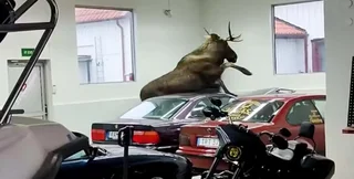 Лось-вандал проник в автосалон и разбил два раритетных BMW (видео)