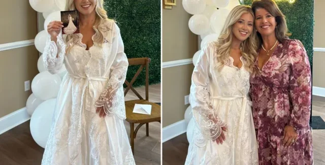 Во время девичника Хейли Дуайер получила от матери коробку с открыткой, где говорилось о том, что швея сделала из ее старого свадебного платья кружевную накидку.