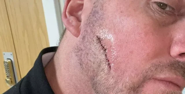Теперь у него на лице остался трехдюймовый шрам, который, по словам хирургов, не будет виден под бородой, пока он не заживет.