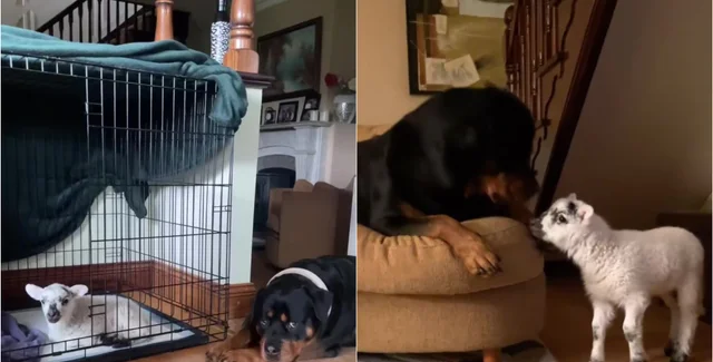 Ротвейлер подружился с ягненком на ферме. Их дружба стала настолько крепкой, что со временем домашнее животное начало вести себя как собака. Это подметила владелица фермы, опубликовав соответствующее видео в своих социальных сетях.