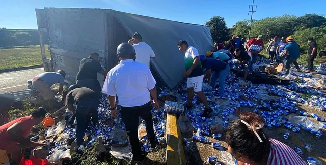В Мексике на трассе Мерида-Кампече произошел курьезный инцидент — десятки людей бросились грабить перевернутый грузовик, из которого высыпались 25 тонн банок пива. Об этом написало Need To Know.