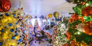 В их доме на 180 квадратных метрах жилой площади установлено 605 украшенных пластиковых елок, которые есть даже в ванной комнате. Они задекорированы 120 00 праздничных шаров, 50 000 огней и тысячами рождественских фигурок.