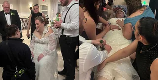 Саманта Коттон танцевала и выкрикивала слова песен, но веселье неожиданно прекратилось, когда невеста внезапно рухнула на пол. По ее словам, причиной плохого самочувствия стал недостаток еды и жидкости в течение дня.