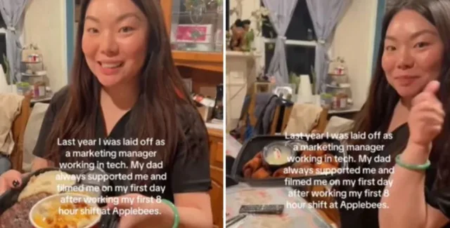 Диану Тринь уволили с должности корпоративного маркетолога в сфере технологий, после чего она начала работать официанткой с минимальной зарплатой в местной кофейне Applebee's. В видео, ставшем вирусным в TikTok, женщина показывает реакцию на это своего отца.