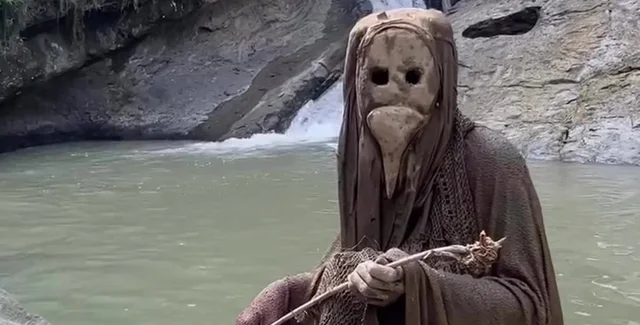 На кадрах, сопровождаемых комментариями Дэниела, видно, как он общается с молчаливыми членами племени, одетыми в необычные одеяния из грязи и глины. Племя охраняет священный водопад, который считается важным местом в их культуре. Гигантские маски, имитирующие образы духовных птиц с длинными носами и устрашающими выражениями, лишь усиливают эффект таинственности.