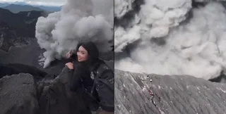 На видео запечатлено, как женщина, преодолевая страх, завершает рискованное восхождение. Под ее ногами осыпается почва, но она цепляется за край кратера, игнорируя поднимающиеся облака густого пепла. Оглядевшись вокруг, туристка даже успевает продемонстрировать большой палец вверх, давая понять, что с ней все хорошо.