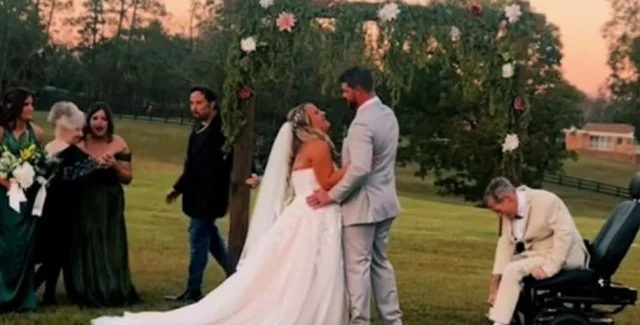 Ролик начинается с того, что официальные лица позволяют молодой паре скрепить свои клятвы поцелуем. В этот момент подружка невесты начала действовать: подбежала к ведущим, прошептала что-то и потянула их за руки, чтобы отвести в сторону. Благодаря этому Бриттани смогла сделать идеальный снимок на память.