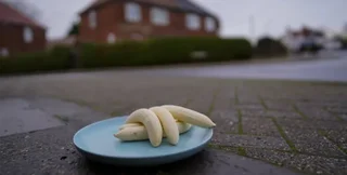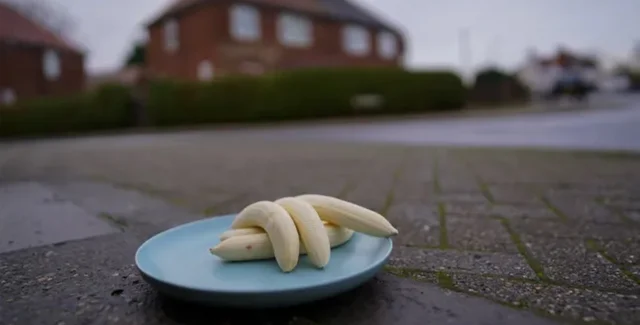 На одной и той же улице каждый месяц появляется тарелка с бананами: никто не знает почему