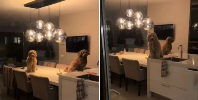 Собаки ждали хозяйку, сидя на столе | Фото: TikTok