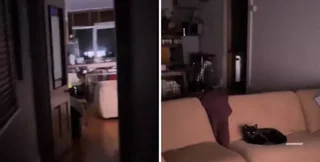 В опубликованном в TikTok видео, набравшем более 4,2 миллиона просмотров за неделю, видно, как Магуайр идет по темному коридору, следуя нарастающему шуму. В гостиной он обнаружил своего черного кота, спокойно сидящего на диване рядом с пультом от телевизора и смотрящего видео с тренировками. По словам хозяина, его питомец выглядел так, словно его раздражало внезапное вторжение.