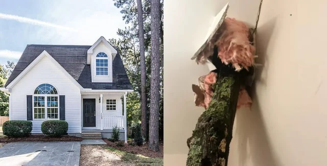 Дерево пробило крышу дома и оказалось всего в нескольких футах от кровати супругов