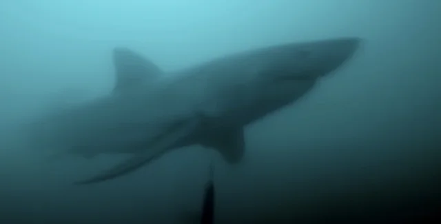 Дайвер внезапно заметил огромную белую акулу, плывущую рядом