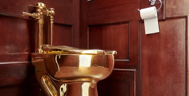 Золотой унитаз является работой под названием "Америка" итальянского художника-концептуалиста Маурицио Каттелана. Произведение высмеивало чрезмерное богатство людей, весило около 100 килограмм и было застраховано на 6 миллионов долларов. Стоимость золота на тот момент составляла 3,5 миллиона долларов.