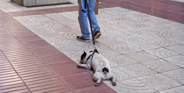 На кадрах видно как мужчина изо всех сил пытается выгулять своего четвероногого друга, который категорически против этого. Вместо того чтобы с энтузиазмом исследовать улицы, собака предпочитает лечь на тротуаре и притвориться мертвой. Попытки хозяина поднять питомца заканчиваются полным провалом, а в какой-то момент он даже бросает поводок и уходит — в надежде, что упрямец пойдет за ним. Но нет: пес остается дальше лежать.