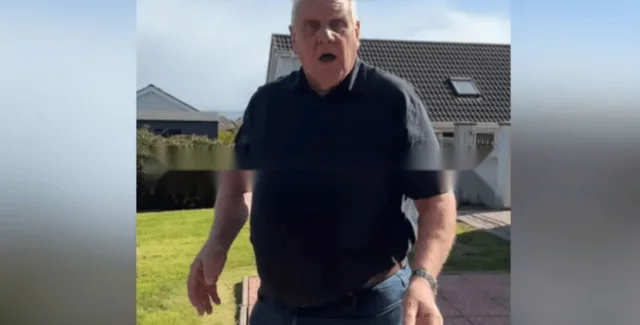 На видео "блудная дочь" прячется за углом дома, а затем выскакивает, когда отец выносит картон, пустую упаковку из-под молока и маленький мусорный бак.