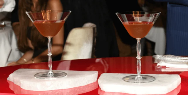 Напиток был подан в одном из двух сохранившихся в мире хрустальных бокалов Baccarat Service Leczinska, датированных 1937 годом. Эти бокалы отличаются исключительной чистотой хрусталя и были изготовлены вручную по проекту дизайнера Жоржа Шевалье. Название сервиза отсылает к королеве Марии Лещинской, супруге Людовика XV — именно он дал разрешение на основание мануфактуры Baccarat в 1764 году.