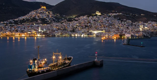 В Греции есть остров Сирос, где отдыхающие могут получить более традиционный греческий опыт, ведь там меньше развит туризм. Он расположен всего в 30 минутах езды на пароме от Миконоса.