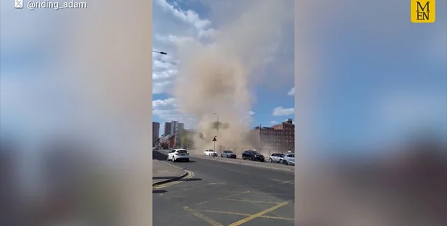 В британском городе Манчестер местные стали свидетелями редкого атмосферного явления — пылевого торнадо. По словам очевидцев, оно было высотой до 30 м и крутилось в центре города.