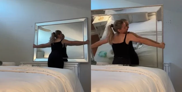 На кадрах, которые уже набрали более 17,7 миллиона просмотров и 2,2 миллиона лайков, Оливия пытается водрузить большое зеркало на камин. Все шло по плану ровно до того момента, пока зеркало не упало прямо на нее. Девушка рухнула на кровать, а зеркало накрыло ее с головой. К счастью, обошлось без травм, и Оливия тут же позвала маму на помощь.