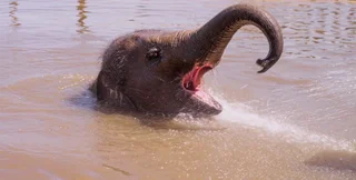 Журналисты указывают, что двухлетняя слониха Нанг Пая, самая молодая в стаде, радостно заходит в воду, а затем полностью погружается, чтобы хоть немного спрятаться от жары. После этого можно увидеть, как она игриво набирает хоботом огромные порции воды, чтобы утолить жажду.