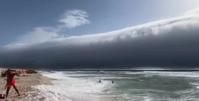 На кадрах можно заметить, что явление напоминает морскую волну, будто бы постепенно накатывающуюся на отдыхающих на пляже. Многие старались заснять и понять, стоит ли сейчас убираться с этого места как можно дальше.