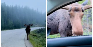 Канадка Келли Паксиан вместе с мужем ехала по лесной дороге на работу, когда случайно им не попался лесной житель. Животное подошло к людям и явно интересовалось пассажирами в машине, а ролик с поведением млекопитающего стал вирусным в социальных сетях.