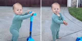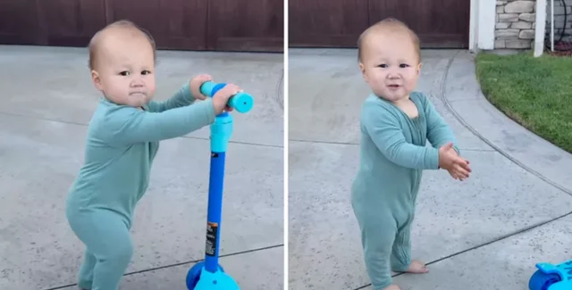Видео, на котором малыш катается на самокате, стало вирусным. Пользователи поражены тем, как уверенно 17-месячный ребенок держится на ногах и управляет движением.