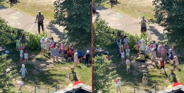 Видео с дедушкой, который поливал кусты и решил организовать летний "дождик" для детей, распространили на платформе United24 Media, созданной Министерством цифровой трансформации Украины. Там отметили, что лето в Украине уже расцвело в полную силу, и работник с дошкольниками устроили сезонное развлечение.