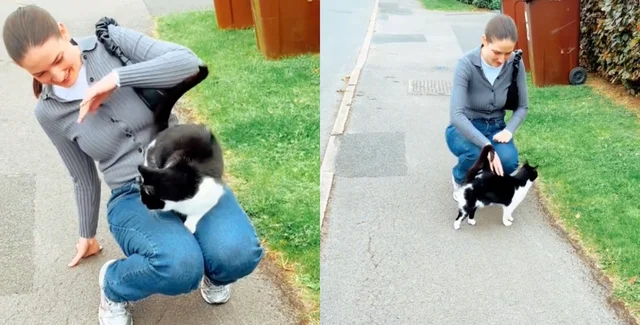 Обычная прогулка обернулась вирусным хитом в TikTok для женщины, которая остановилась на улице, чтобы погладить черно-белую кошку, и попала в плен ее обаяния.