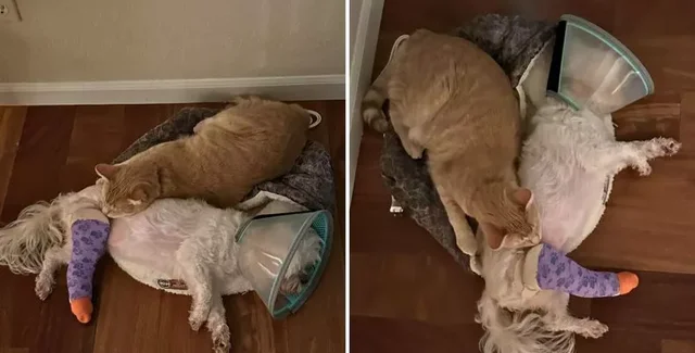 Собака сломала лапу: владельцы были ошеломлены, когда увидели, что теперь делает кот (фото)
