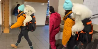 Самоед, весящий около 50 фунтов (более 22 кг), не просто ездит в метро, он путешествует в огромном рюкзаке за спиной своей хозяйки. О своем питомце американка рассказала в одном из видео в TikTok.
