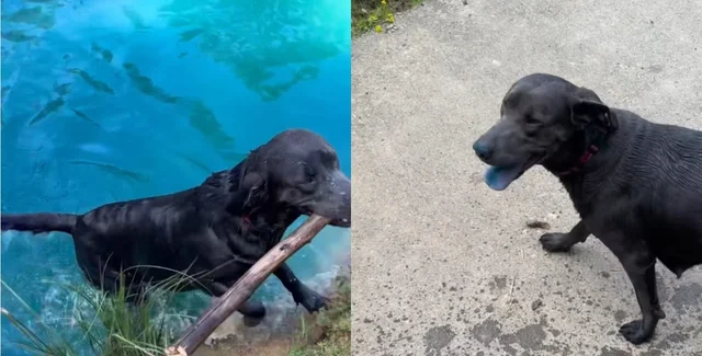 Мужчина покрасил пруд в синий и забыл о своей собаке: та очень любит воду (видео)