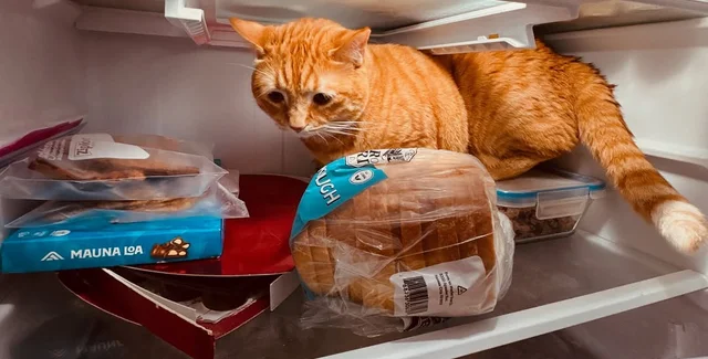 Позже Пенни обнародовала новое фото ее любимца. Рыжий кот снова "облюбовал" холодильник и очень активно изучал содержимое продуктов.
