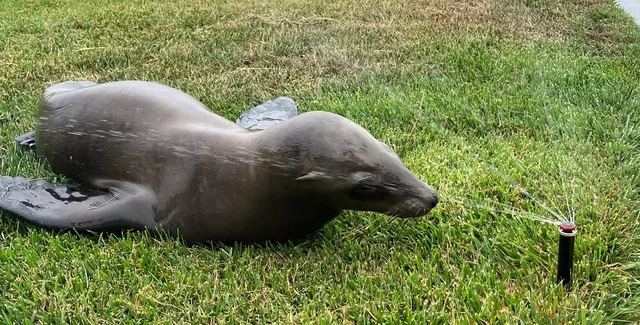 "Офицеры, пожарные и местные жители использовали щиты, корзину для транспортировки и картон, чтобы безопасно загнать морского льва в парк Point San Pedro Bay Park. В парке морской лев с удовольствием воспользовался оросительной системой и освежился под дождевой водой, — говорится в сообщении.