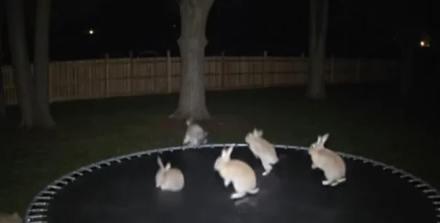 Видео с прыжками зайцев на батуте стало очень популярным в сети — набрало почти 220 млн просмотров. Пользовательница под ником Rachel the Cat Lovers опубликовала кадры несколько дней назад и утверждала, что ее камера Ring зафиксировала неожиданных гостей.