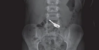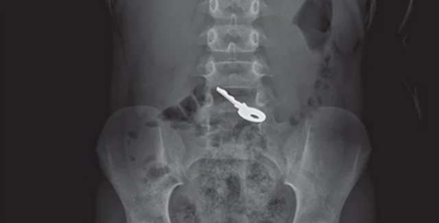 Несмотря на отсутствие физических симптомов, в приемном отделении был проведен рентген, который показал инородное тело в животе. Поскольку ключ не вызвал осложнений, медики решили не проводить операцию, а ограничиться наблюдением.