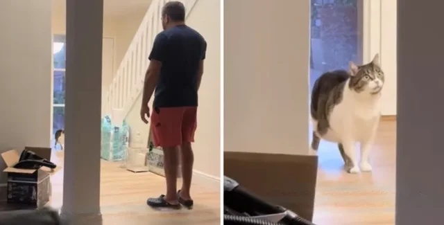 Похожий на владельца кошки родственник наведался в гости: реакция животного покорила сеть (фото)