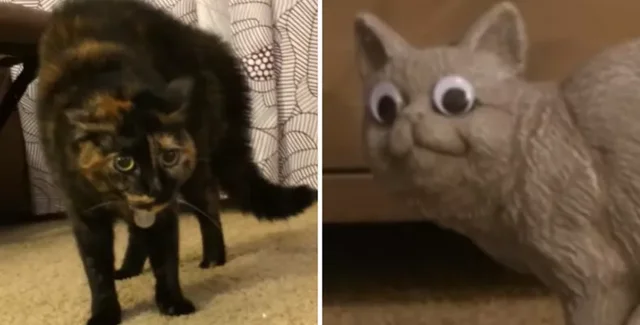 32-летняя жительница Техаса приобрела нелепую вещь, небольшую жуткую жуткую скульптуру кота с выпученными глазами, и показала ее своей кошке Мии. Однако она не надеялась, что животное так отреагирует на новый предмет интерьера.