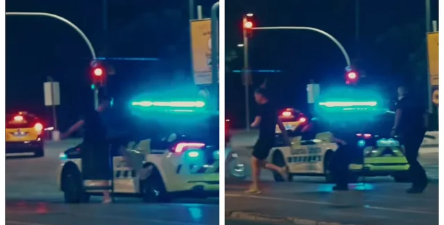 Ролик с курьезным преследованием стал вирусным — набрал более 14 млн просмотров. На видео видно, как в три часа ночи 27 июня неизвестный турист посреди Барселоны навеселе подходит к полицейскому авто и, похоже, бьет заднюю дверь. Затем он гордо отходит, пока два офицера выскакивают из машины с дубинками в руках.