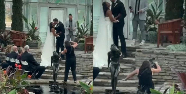 Фотограф упала в фонтан на свадьбе, но продолжила снимать и сделала идеальные кадры