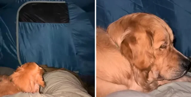 Семья из Великобритании взяла годовалого золотистого ретривера по кличке Джои в поход. Но штормовая погода превратила отдых в испытание, и пес выглядел явно недовольным и уставшим.