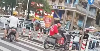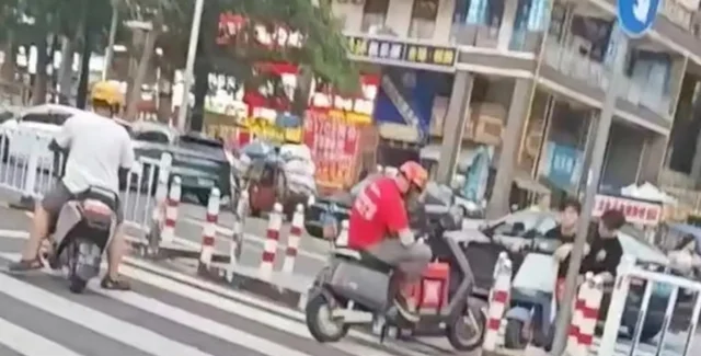 На юге Китая водитель службы доставки еды и мужчина на электровелосипеде не менее четырех часов блокировали друг друга на узком переходе, поскольку ни один из них не хотел уступать дорогу.