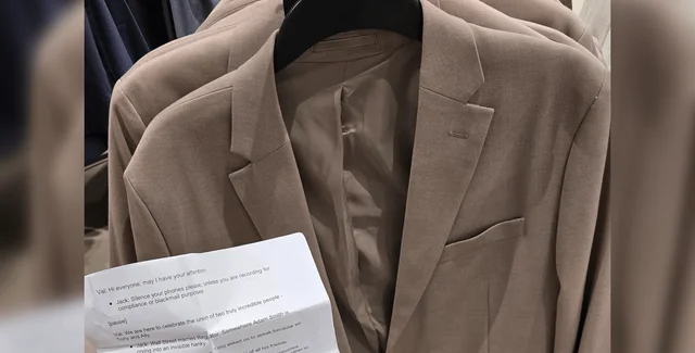 Житель Филадельфии (штат Пенсильвания, США) во время покупки костюма в магазине H&M наткнулся на неожиданную находку. В кармане пиджака лежал листок со свадебной речью.