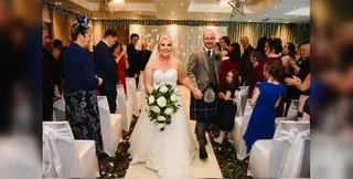 Сам партнер поехал помогать невесте утром, поэтому Эндрю отправился сам. Увидев возле отеля волынку и гостей в праздничном наряде, он удостоверился, что пришел правильно.
