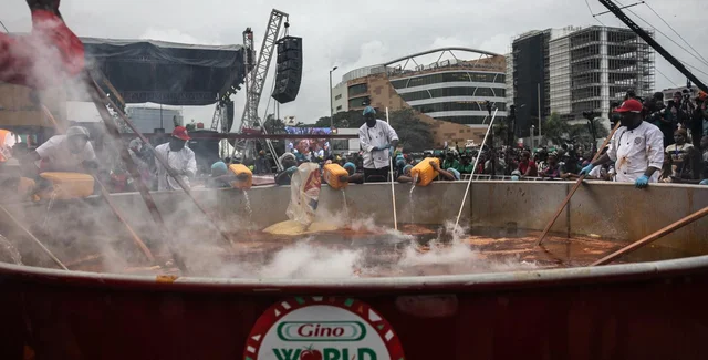 В Нигерии шеф-повар Гильда Бачи и ее команда пытались приготовить самое большое в мире блюдо из риса — джолоф, чтобы попасть в Книгу рекордов Гиннеса.