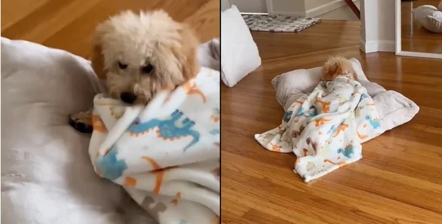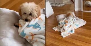 На ролике, опубликованном 6 августа в официальном аккаунте TikTok @mushimaltipoo, видно, как щенок берет в зубы одеяло с динозаврами, перебирается на большую подушку и аккуратно натягивает покрывало на себя, словно настоящий человек. После этого он сворачивается клубочком и засыпает.