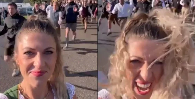 Видео с "пивным забегом" стало вирусным — набрало более 14 тыс. реакций за несколько часов. На кадрах можно увидеть блондинку, которая снимает видео с начала знаменитого фестиваля в ФРГ.