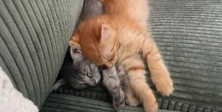 На фото можно увидеть рыжего и серого котят, которые обнимаются в разных позах. Сама владелица показала "bonded pair", то есть тесно связанная пара, которая делится особой связью, и приют стремится, чтобы их взяли вместе.