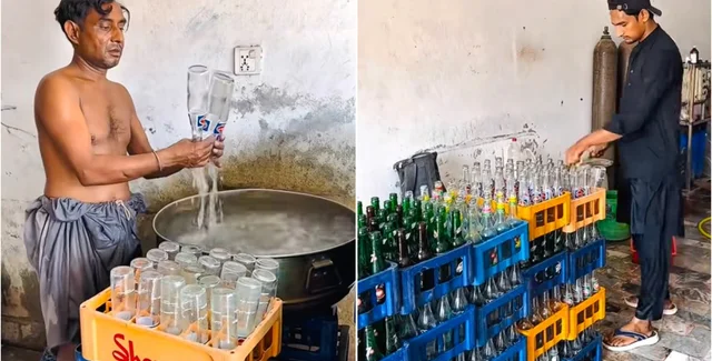Из кадров видео можно предположить, что мужчины занимаются разливом газированных напитков. Что касается вероятной локации съемок, то на одной из бутылок можно увидеть надпись "Lahore", что созвучно с названием одноименного города в Пакистане.